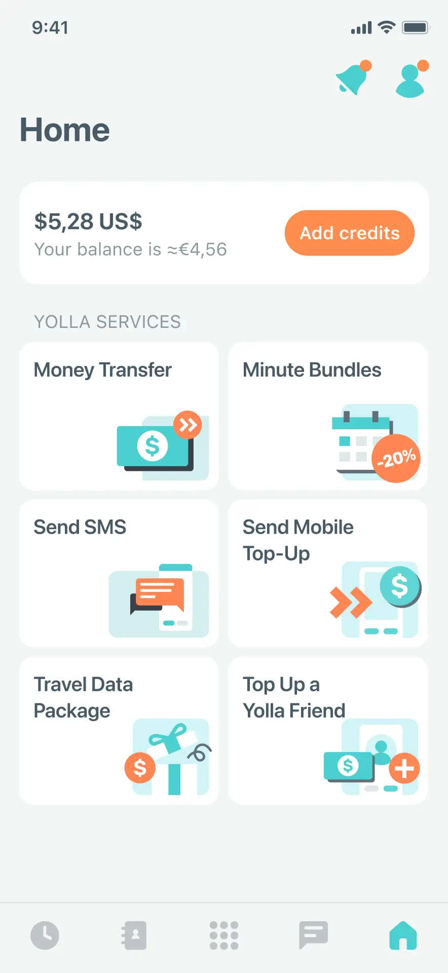 With Yolla, once you’re set up, you can make international calls and send money without switching apps or creating up new accounts. Everything happens safely and easily in one place.