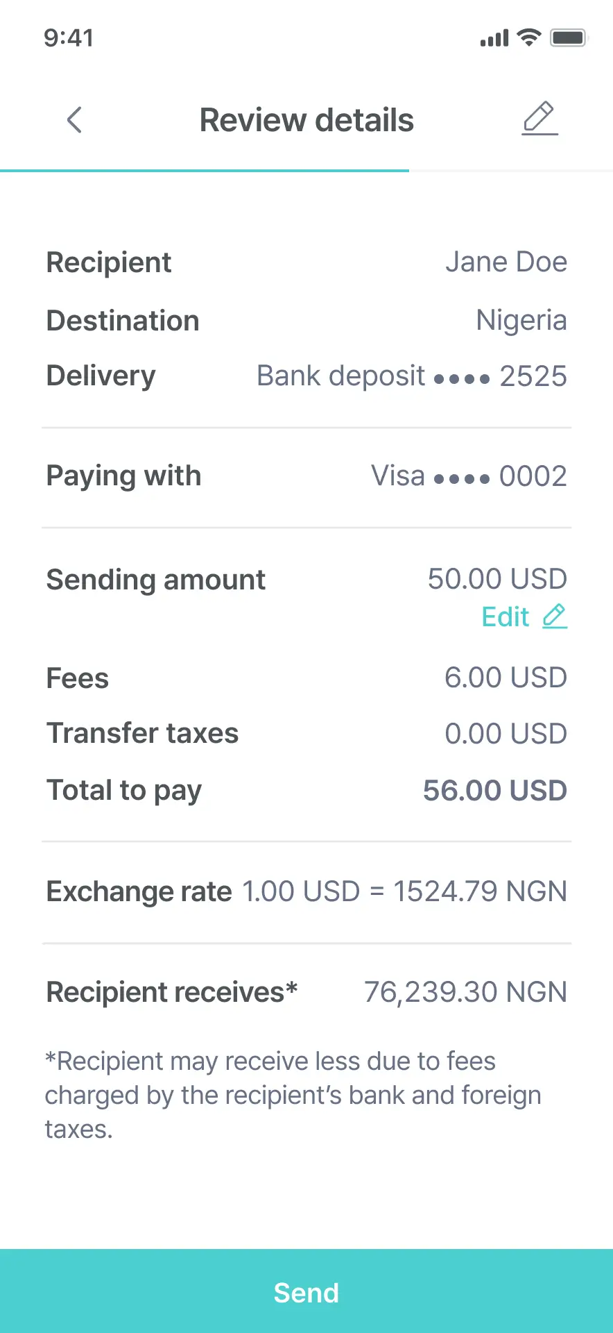 You’ll now see a final review screen. Take a moment to check everything’s correct — if you need to change the amount, tap Edit.